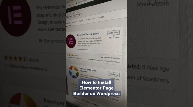 Installing Elementor Page Builder wordpress Plugin from WordPress Library